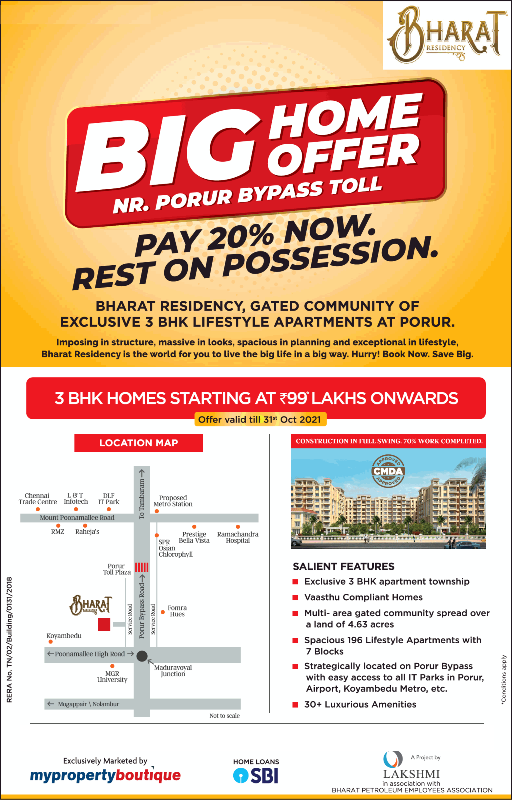 Bharat Residency, Gated Community of Exclusive 3 BHK Lifestyle Apartments at Porur. Imposing in Structure, Massive in Looks, Spacious in Planning and Exceptional in Lifestyle, Bharat Residency is the Wor