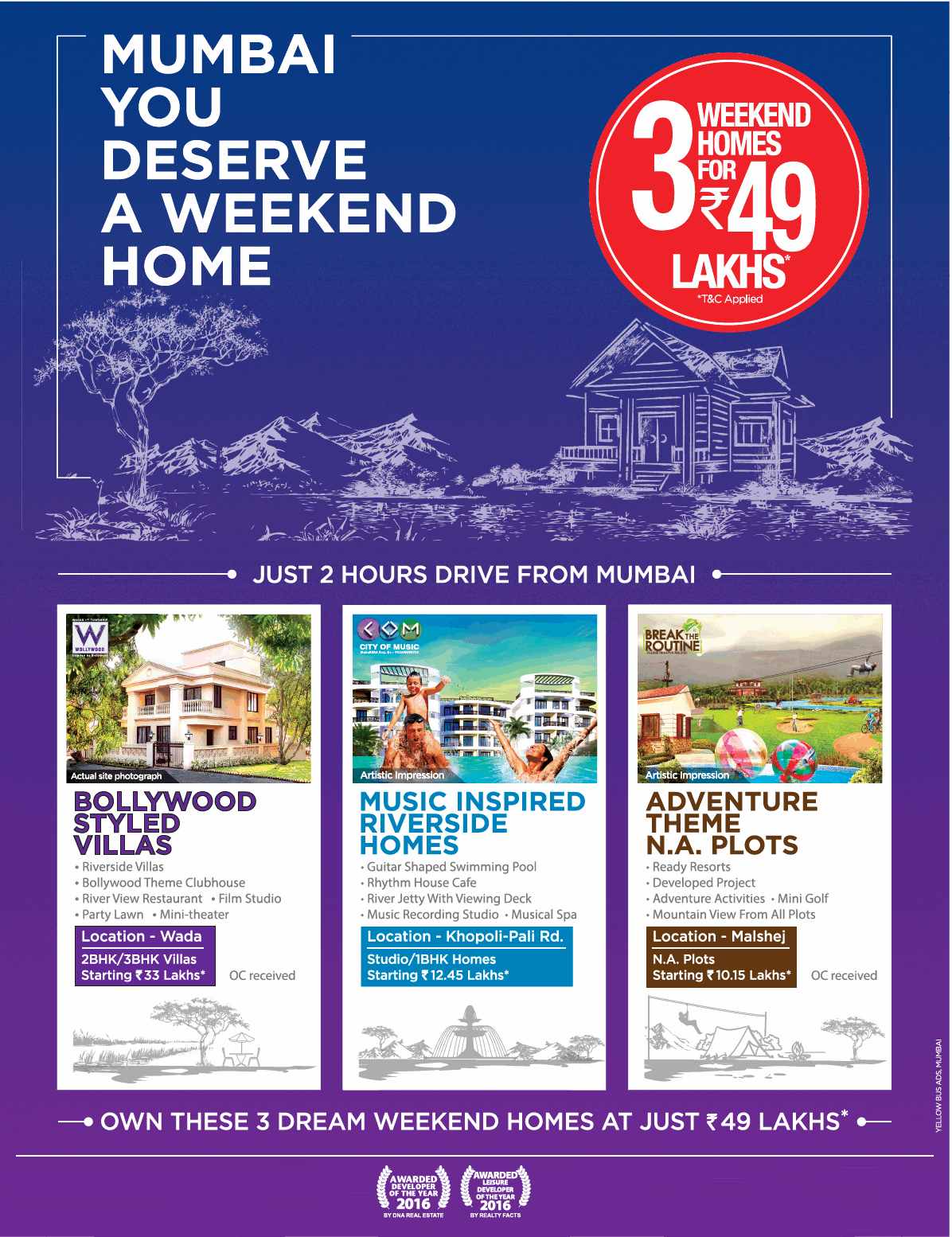 3-weekend homes for Rs. 49 Lakhs. Just 2 hours drive from Mumbai. Wollywood : Located at Wada