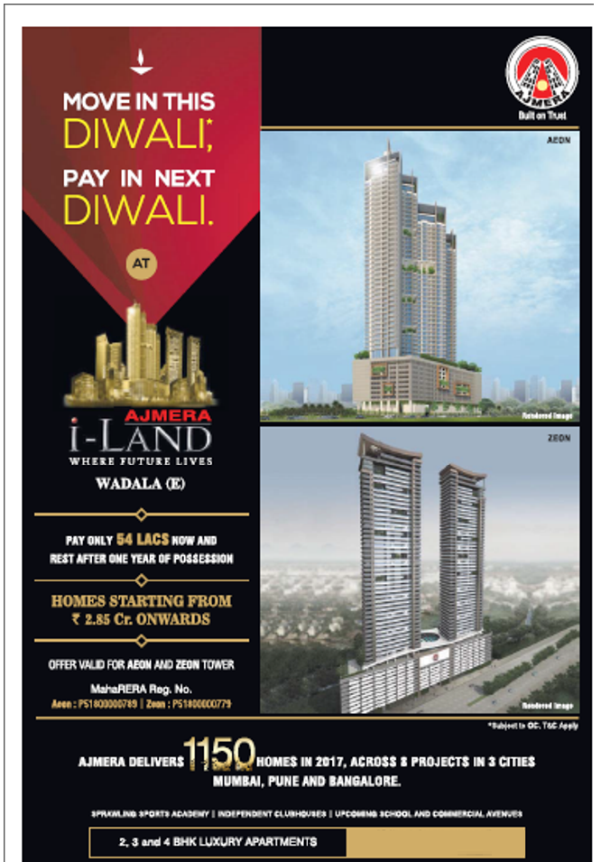 Move in this Diwali, pay in next Diwali in Ajmera I-Land, Mumbai.