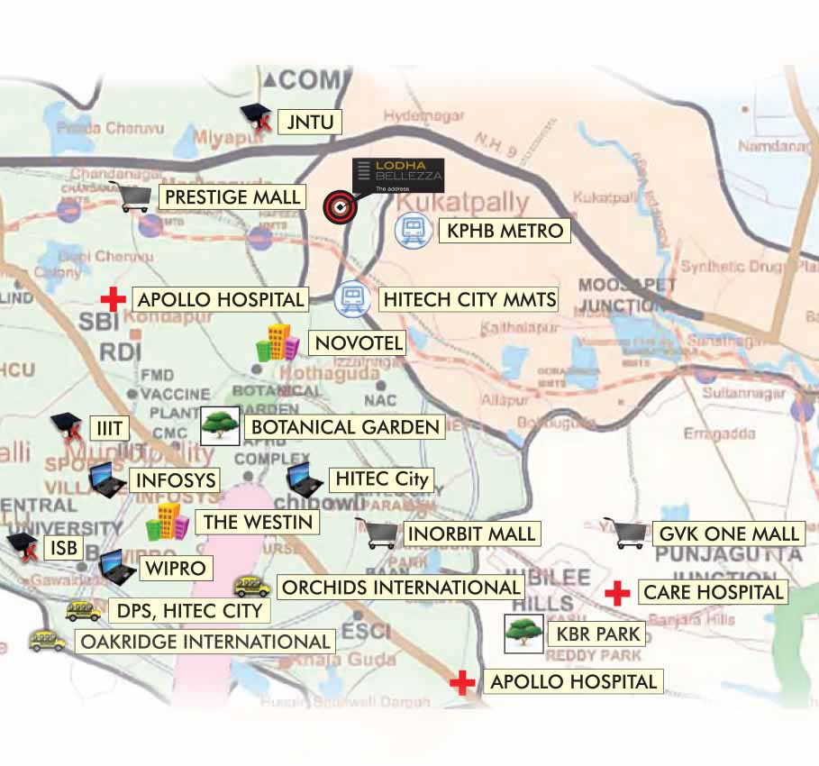 Lodha Bellezza is a residential project located at Kukatpally in Hyderabad. Leisure pursuits or active sports. Club Bellezza has it all. A rare example of when luxury meets grand vision. World-class fitness facilities, gourmet restaurants, a private theatre and a lot more – in short, every comfort is at your disposal at Club Bellezza. Nestled in this modern city is Lodha Bellezza – strategically located in the heart of Eden Square. Over the last 5 years, this location has witnessed unprecedented growth, swiftly emerging as one of Hyderabad’s most coveted destinations.