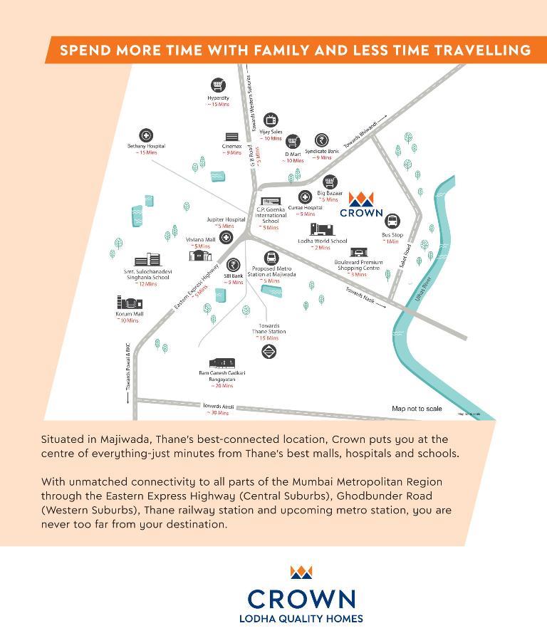 Spread over beautiful ~10 acres, with open green landscapes, Crown Thane offers a plethora of world-class amenities at the best-connected location – Majiwada, Thane. It offers world-class no compromise 1 & 2 BHK Lodha quality homes that have been intelligently designed to fulfil all your needs.