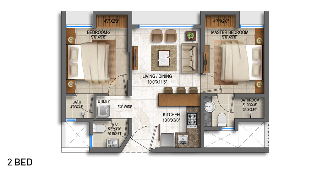 Part of a 70+ Acre self-sufficient ecosystem, it comes with an ICSE school, shopping complex, wide roads and multimodal transport options. Offering you a thriving and self-sustaining ready ecosystem that ensures you live life with absolutely no compromises.