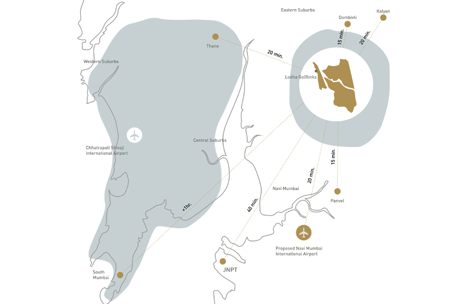 Lodha Golflinks is a residential project located at Dombivali in Mumbai. The Prestige Collection has the last few opulent villas, condominiums and terrace residences left. As there are no more projects under Golflinks, these few elegant homes are the only opportunity for you to live the high-life. Making the prestige collection more magnetic is the fact that all the residences are ready to live in, making them much more dearer. So when you think about it, it’s a matter of privilege as much as urgency. The green vista stretches for as long as the eye can see. The winding river gently passes by as the awe-inspiring hills provide the perfect background. The setting is extremely pleasing with a 9-hole golf course at your beckoning and masterfully created opulent homes just make it even better. These homes go beyond the horizon of spectacular and provide quintessential features for even the most discerning connoisseur. These are after all the most elite set of residences in Palava today.