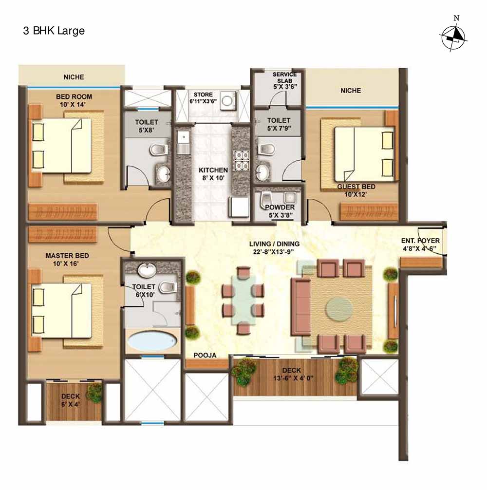 These impeccably planned residences with automated systems, the first in Bhandup are stylishly designed with all the modern luxuries, large wooden floor sundecks to relax and lounge in the privacy of your home. Lodha Imperia‘s chic rooftop clubhouse captures a 360-degree eye-view of riveting vistas.