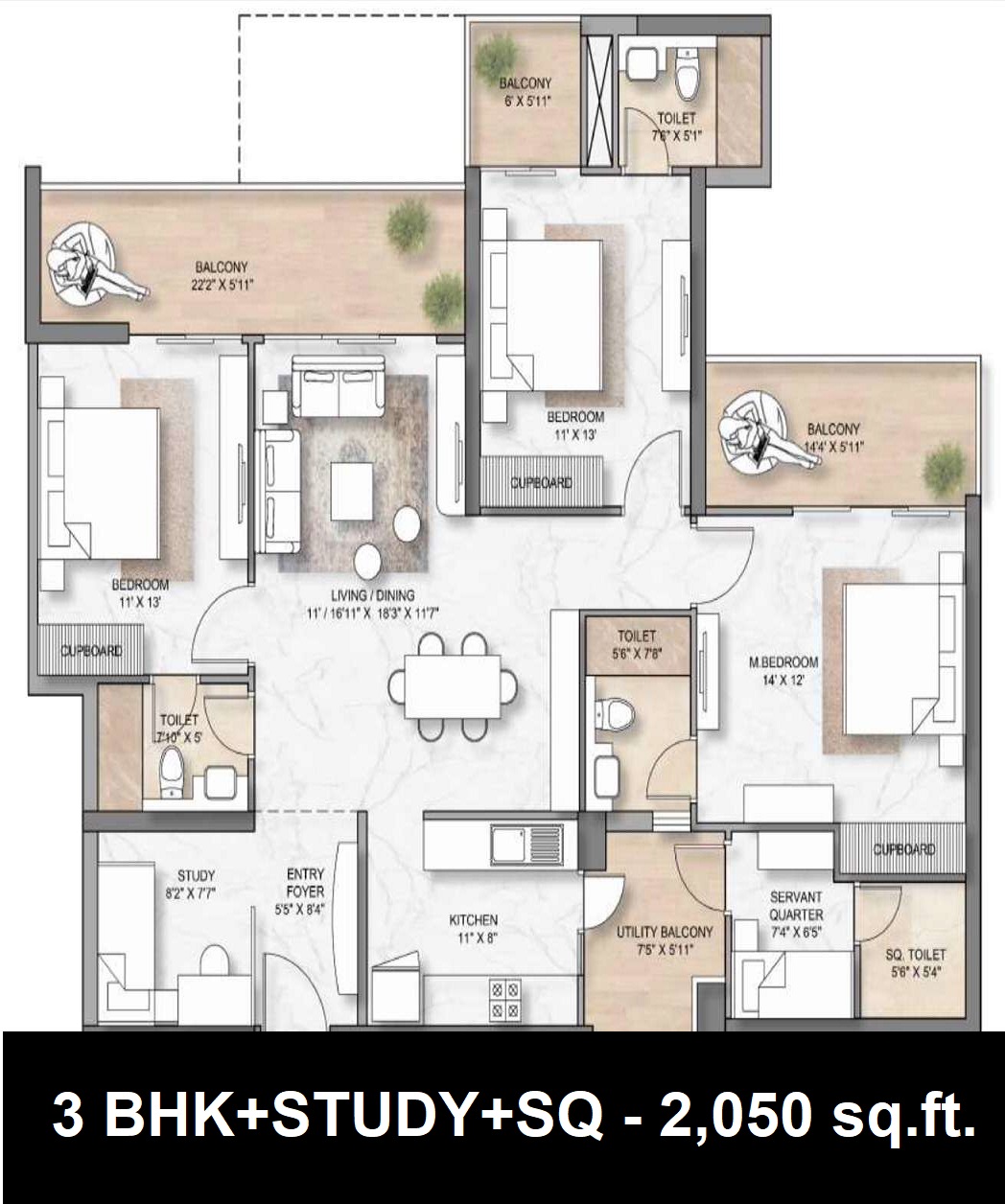 | Apartment | 3 BHK + Study | 2050 Sq. Ft. | aspect_ratio |