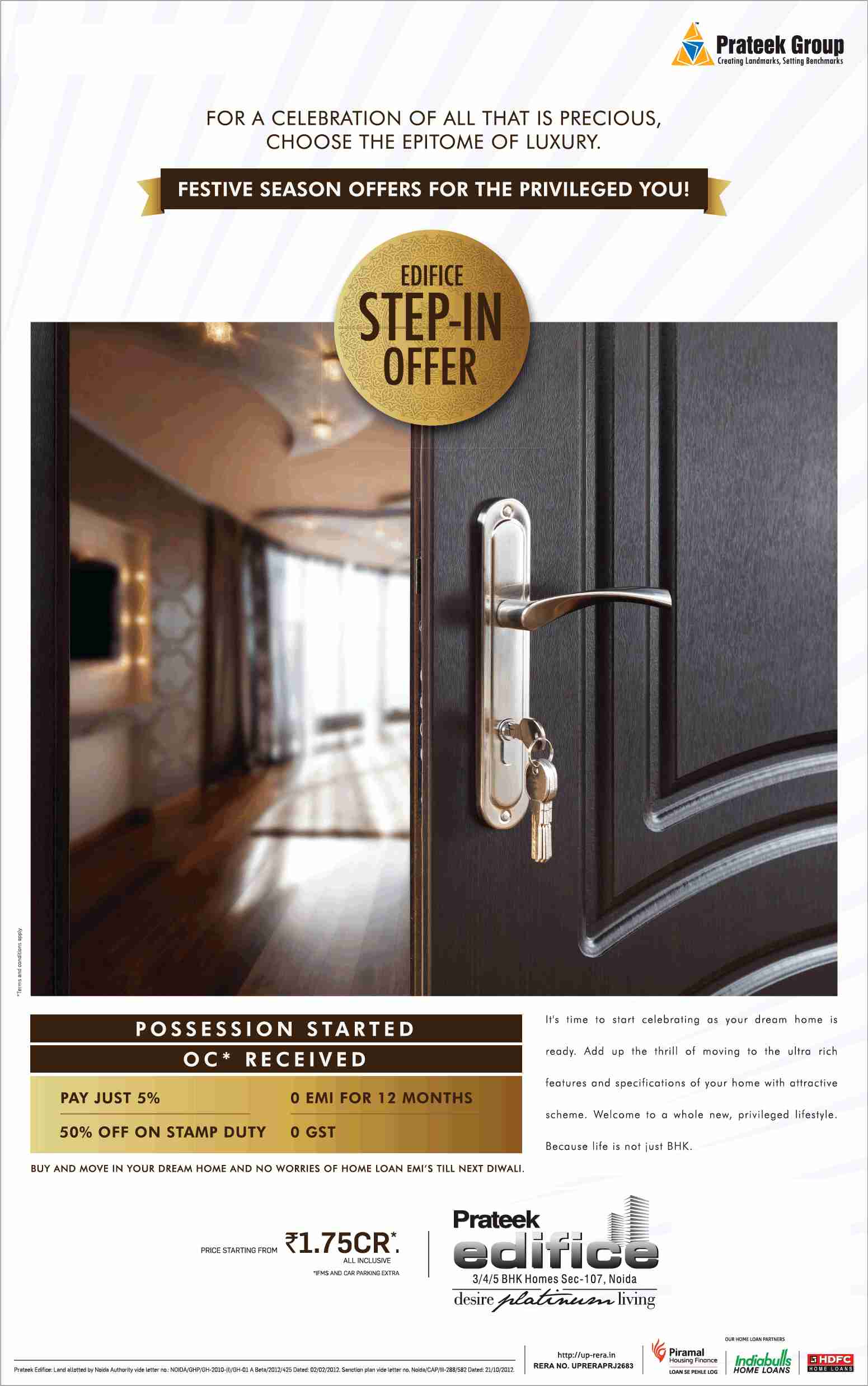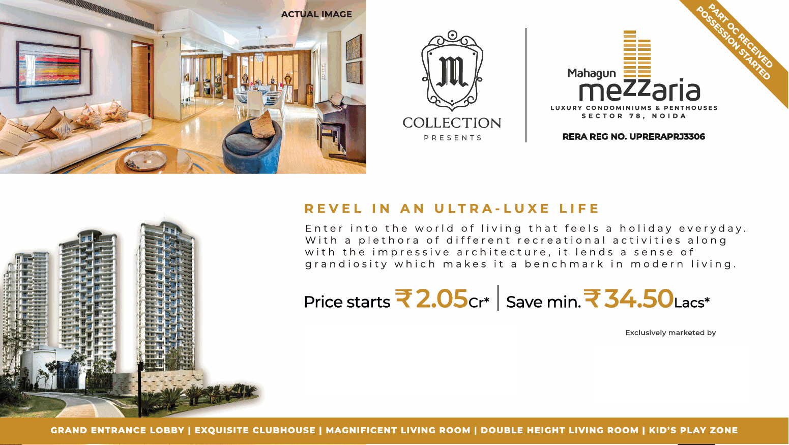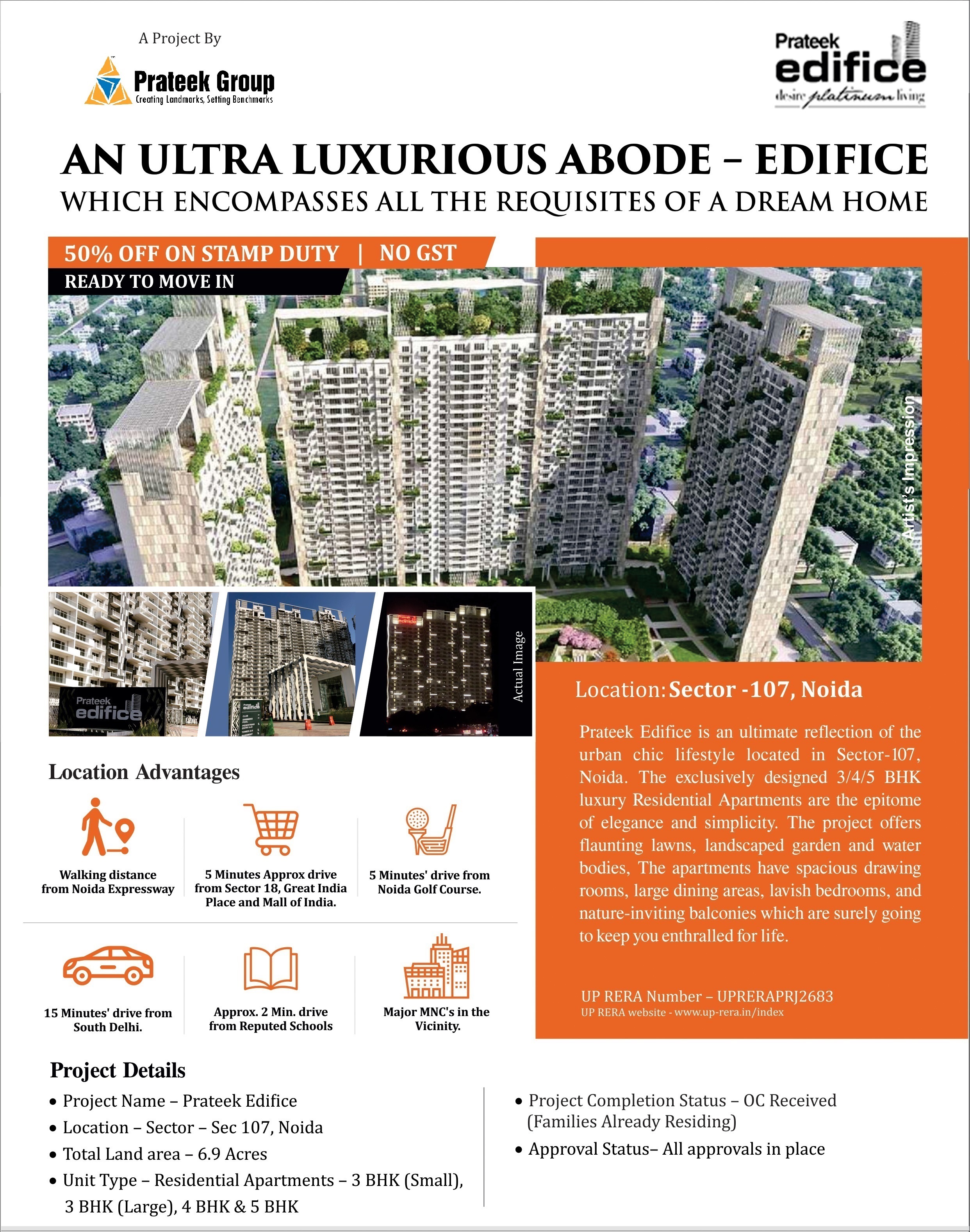 Prateek Edifice is a residential project located at Sector 107, Noida. The project has been appreciated as it offers 3BHK small and large, 4BHK and 5BHK apartments. These apartments range from super areas of 2,070 sq. ft. to 4,300 sq. ft