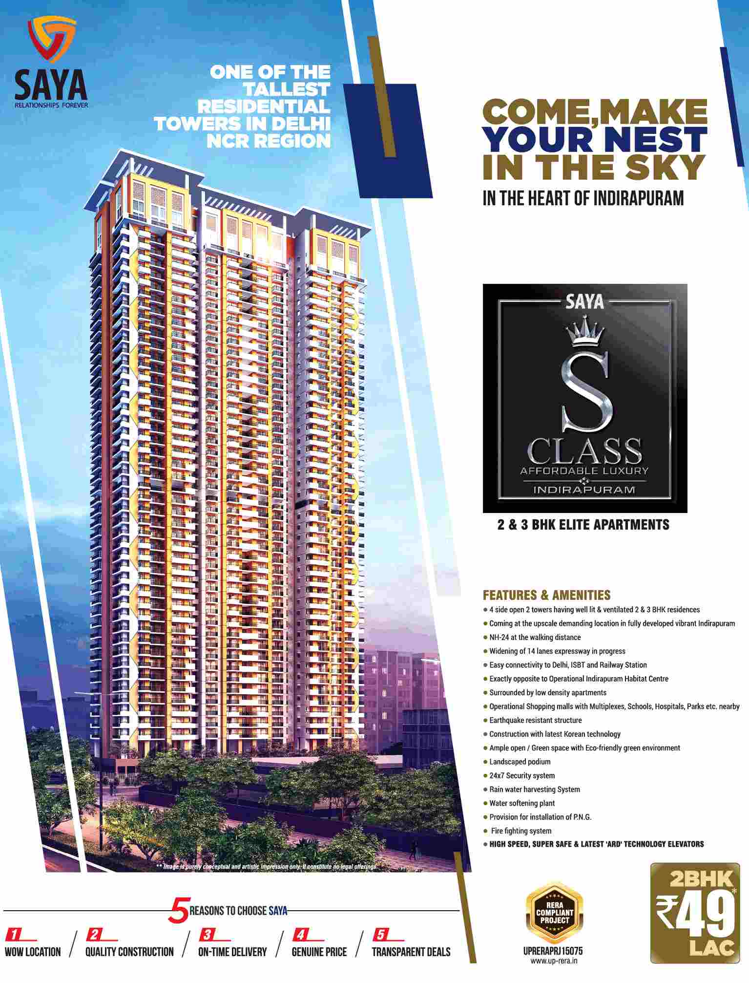 Come make your nest in the sky by residing at Saya S Class in Ghaziabad