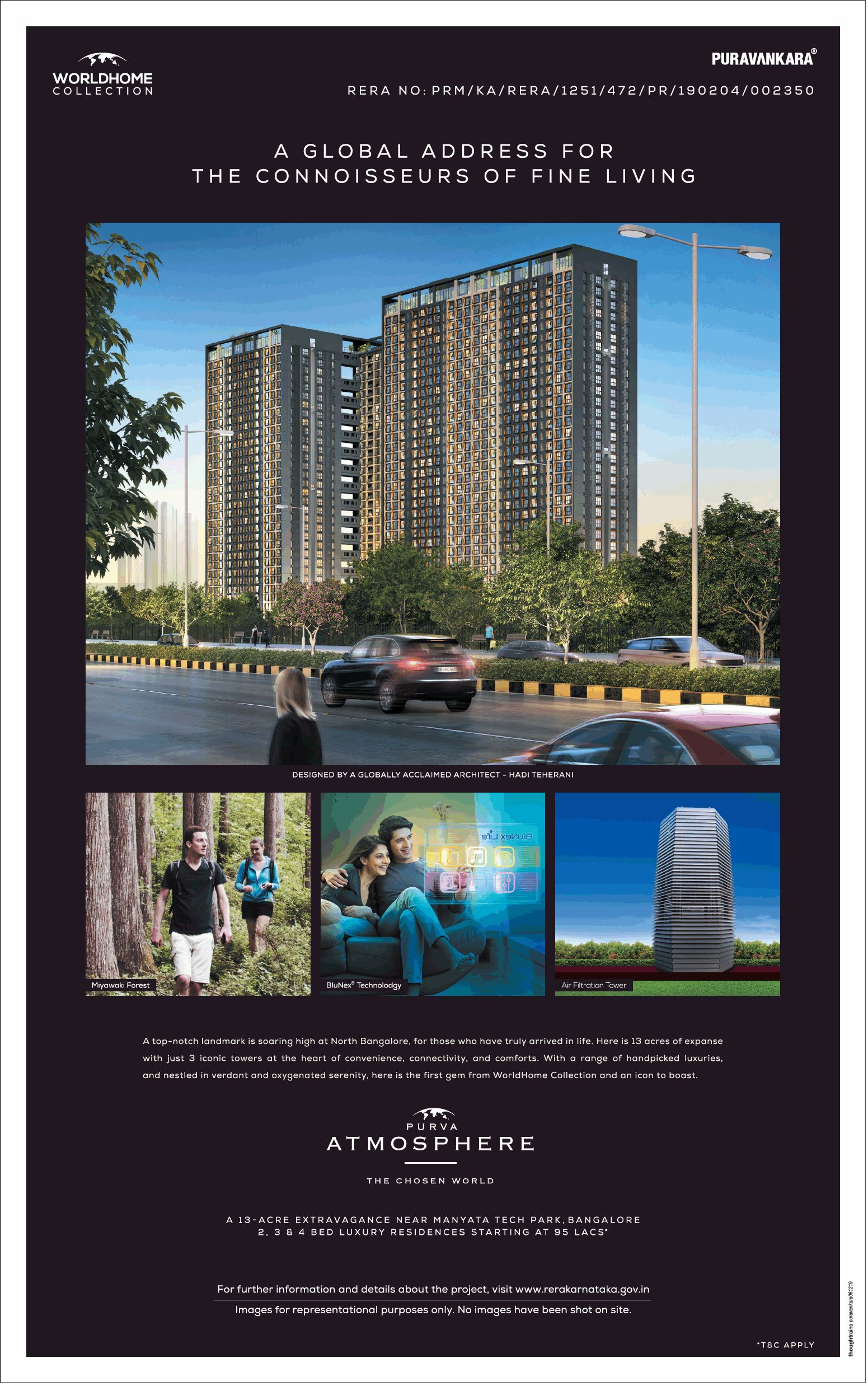 A place where childhood giggles. Pre-launching Purva Atmosphere, (Approx) 13-Acre Extravagance Near Manyata Tech Park, Bangalore. 2, 3 & 4 Bed Luxury residences starting at Rs. 95 Lacs.