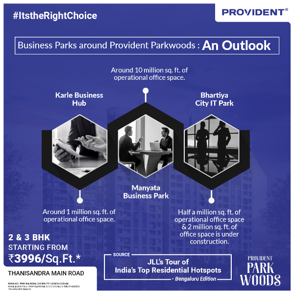 Provident Park Woods is a residential project developed by Provident Housing Ltd. The project is located in Thanisandra Main Road, Bangalore. 2 and 3 BHK Starting From Rs 3996 per Sqft. Provid