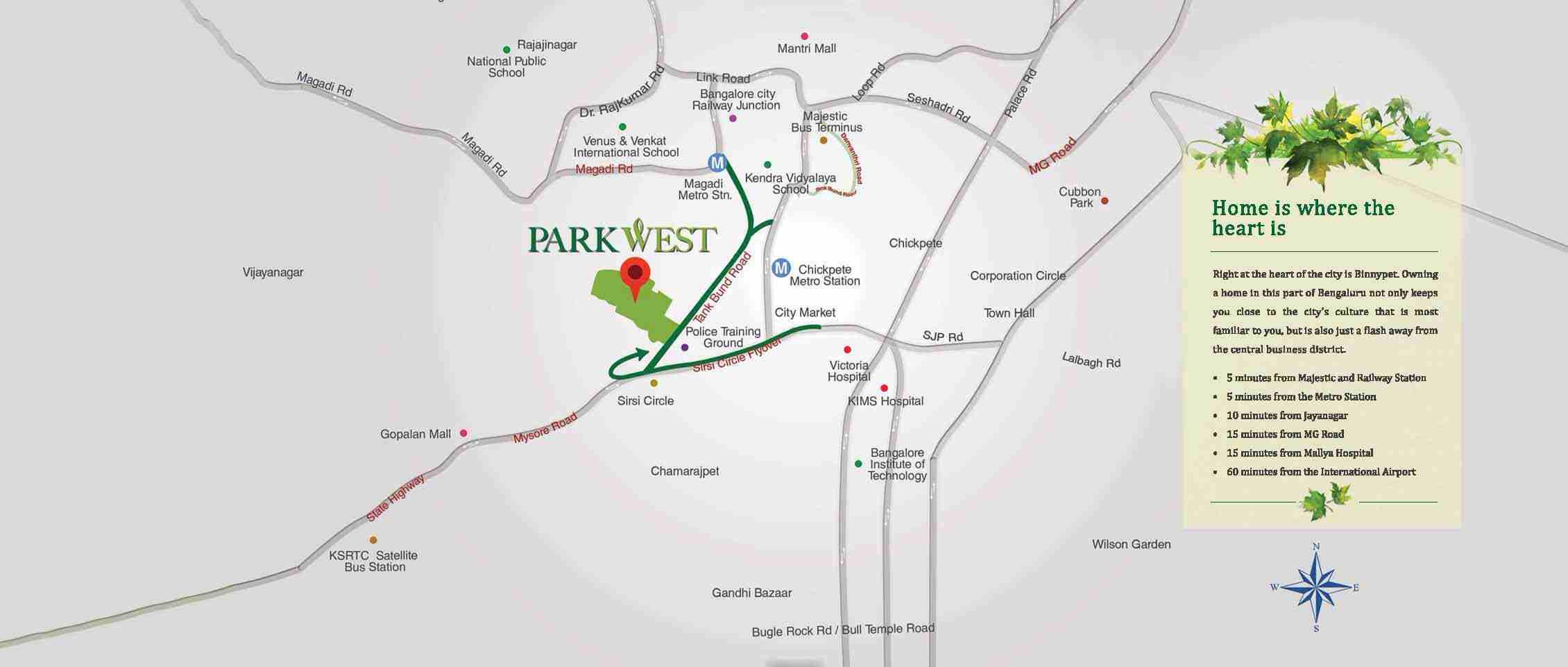 Shapoorji Pallonji has launched Park West, a grand residential project in Binnipete. The project is a concept in which the art of green living can be fully explored. Surrounded with the lush green environment and open spaces, Park West is a stylish and sophisticated project that is designed to experience the luxury of space. The homes are meticulously crafted to meet your necessities in an exclusive serene environment that makes each moment memorable. Enjoy gazing the panoramic view of the city from your home and unwind your daily stress. The project is also a premium gated community all set to give its residents a lifestyle full of joy. Come and experience your dreams of living in the lap of nature here at Park West.