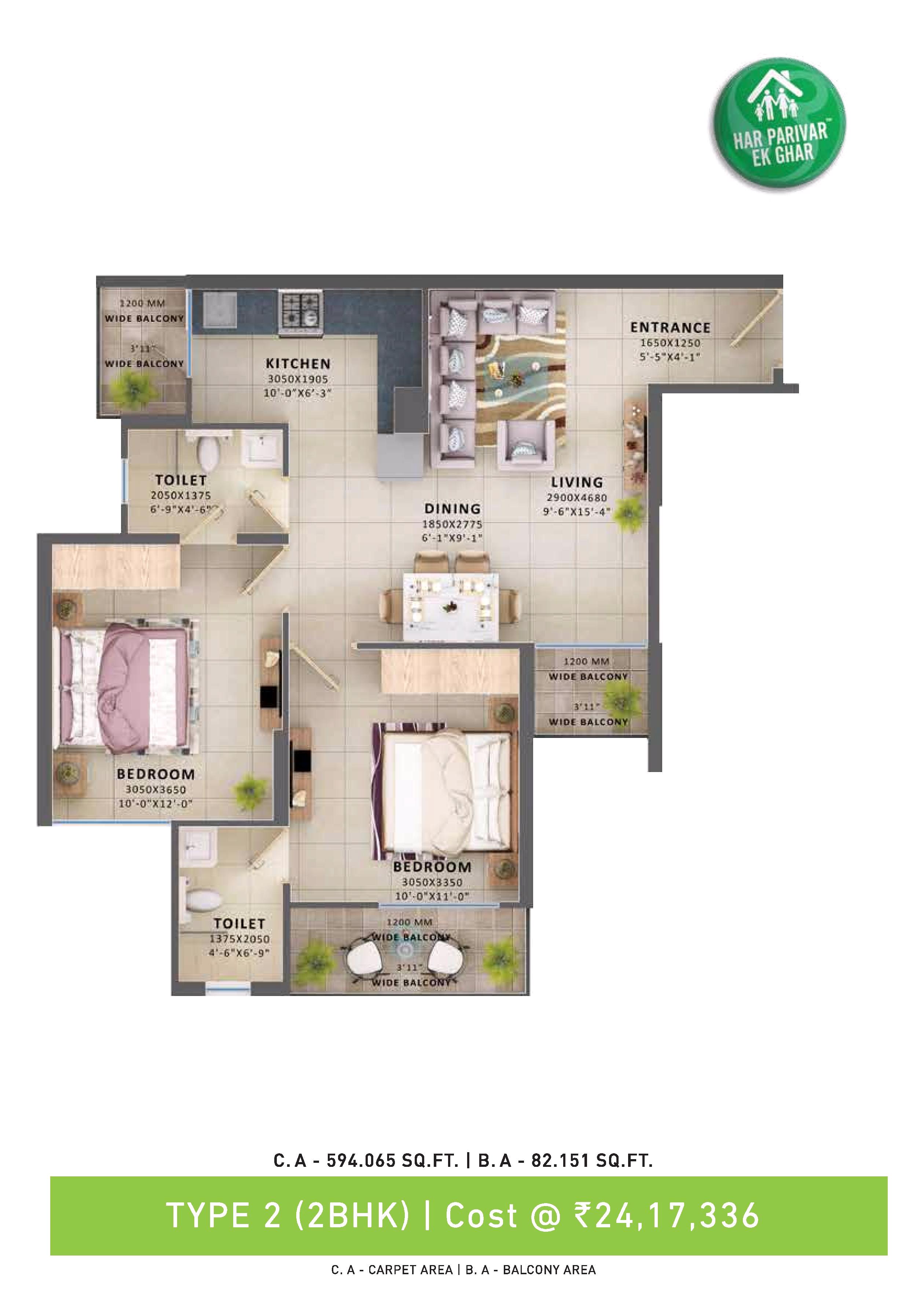 | Independent/ Builder Floor | 2 BHK | 594 Sq. Ft. | aspect_ratio |