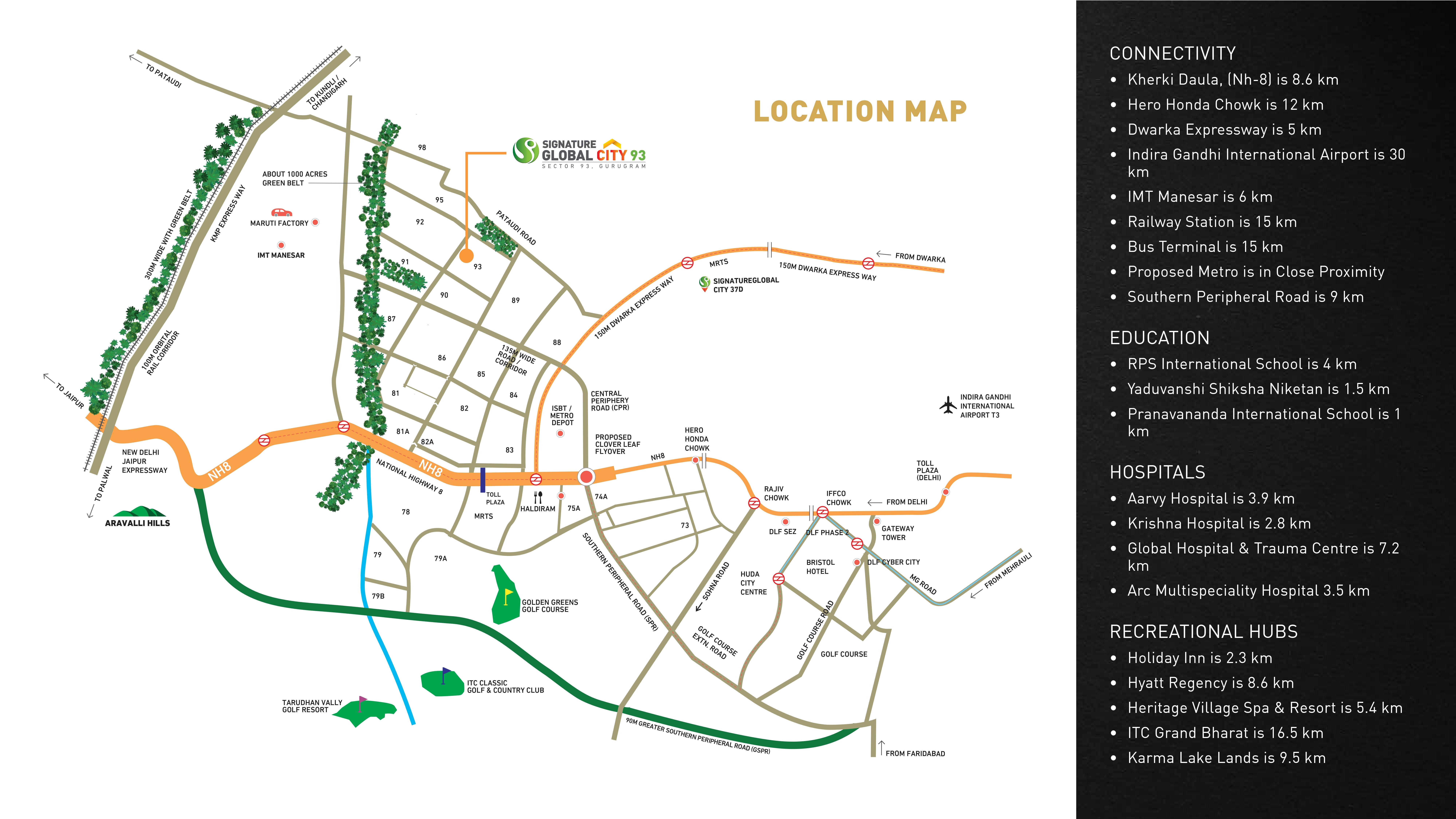 SIGNATURE GLOBAL CITY 93 nestled in the heart of New Gurugram, this project is strategically located at Sector 93, Gurugram, offering superior access to major roads – including NH 48, SPR, CPR & Dwarka Expressway. This is where you can assert your liberty in the independence of each spacious floor. The dynamic architectural language builds luxury, contemporary homes with modern amenities; in the prime and upcoming New Gurugram. All these converge to create cohesive community, where residents interact with each other under a soothingly lush green environment.