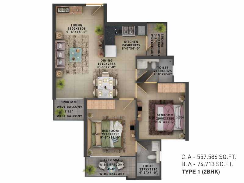 | Apartment | 2 BHK | 558 Sq. Ft. | aspect_ratio |
