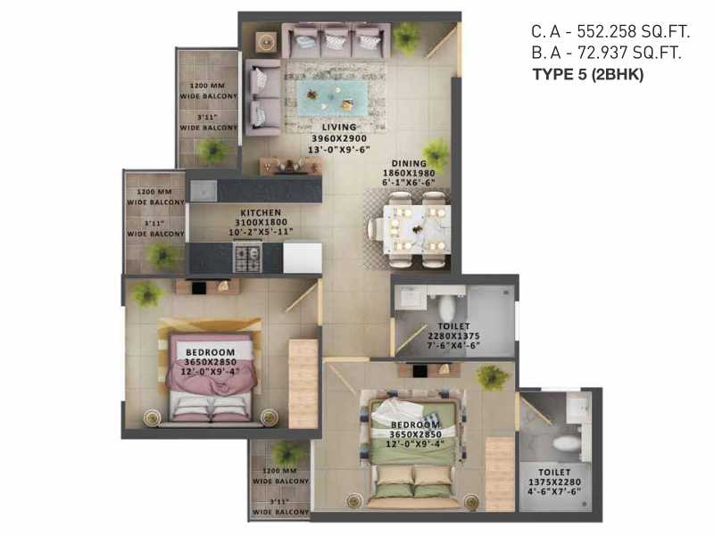 | Apartment | 2 BHK | 552 Sq. Ft. | aspect_ratio |