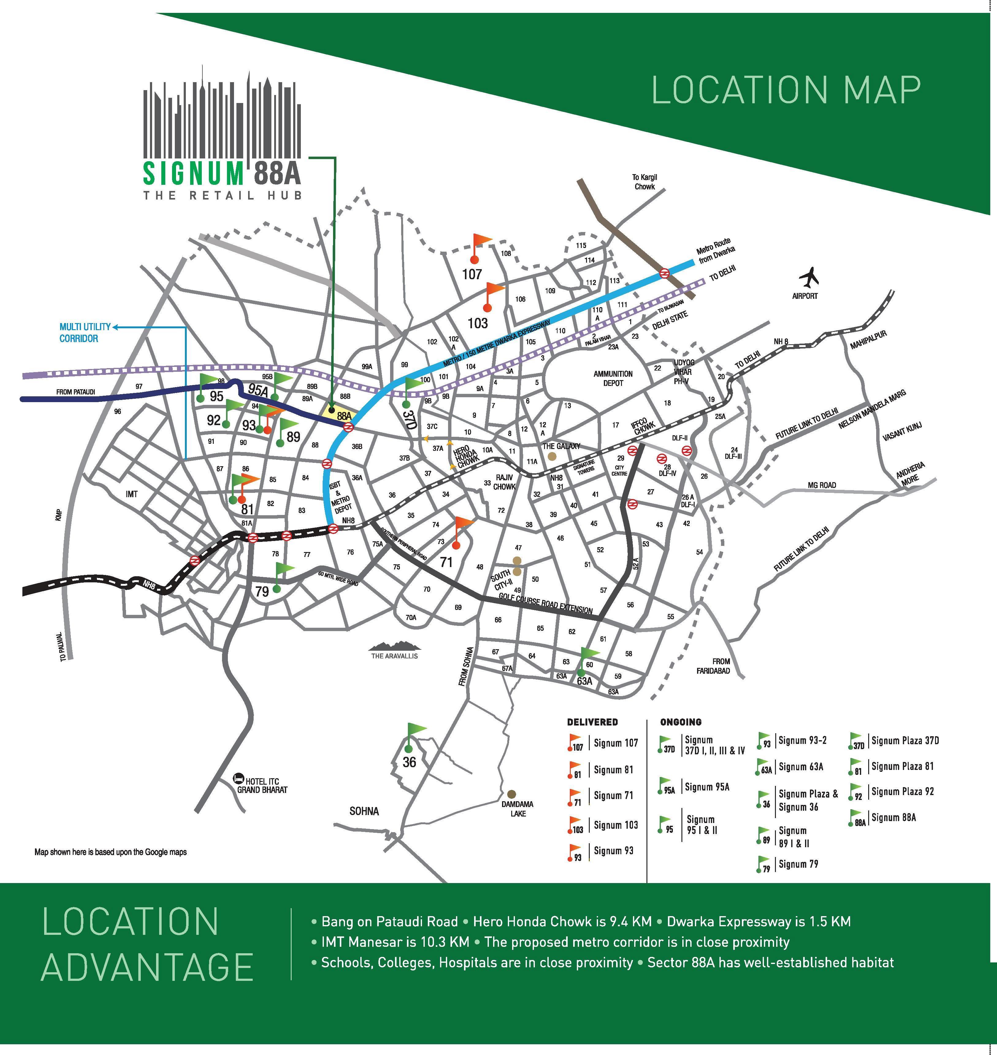 Bang on Pataudi road and well-connected from Hero Honda Chowk, NH-8 and close proximity from Dwarka Expressway, Signature Global Signum 88A is a high street retail hub at sector 88A Gurugram , a perfect blend of luxury and style and has been conceptualized with due diligence and according to a well-constructed business plan. Here, shopping is not limited to only buying merchandise that has extended to delicious food with refreshment and entertainment facilities. These retail shops are perfect for any kind of retail business and one of the best options in high street retail shops in Gurugram. It welcomes investors to invest in a retail center that brings an affluent business solution. This retail center caters an immediate catchment of affluent customers. It's strategic location and bold aesthetics makes it the most relevant destination and a great ROI commercial project in Gurugram.