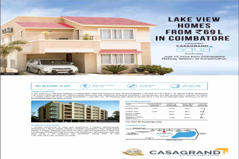 Lake view homes from Rs. 69 Lacs in Coimbatore. Launching Casagrand Aqua, Kuniamuthur just 15 mins from Coimbatore Railway Station, at Kuniamuthur. Big reasons to buy: Best priced project in the city