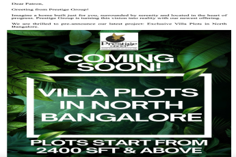 Prestige Group proudly presents an extraordinary opportunity to own villa plots in the heart of North Bangalore . Imagine your dream home nestled in a serene environment, crafted just for you. Unique Selling Proposition Our villa plots offer a unique blend of tranquility and urban connecti...