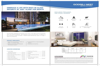 A 122-year-old legacy of trust will now secure your home. Welcome to Godrej Nest, an RFID enabled campus with 7 tier-security features like 24-hour CCTV surveillance, RFID tracker and more. Here, every aspect is designed to care for your loved ones. With assured safety also comes to the promise of a holistic life thr...