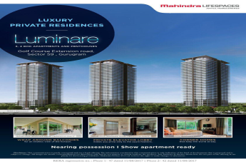Mahindra Luminare is a residential project developed by Mahindra Lifespace. The project is located at Sector 59, Golf Course Extension Road, Gurgaon. The project offers luxurious 3 & 4 BHK apartments and penthouses. The project provides wrap around balconies for an end less view of the horizon. Private ...
