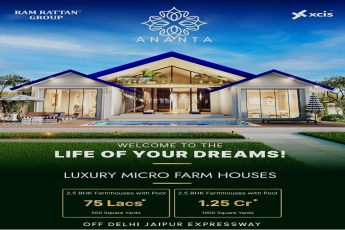 Welcome to Ananta Luxury Micro Farmhouses , a unique blend of nature's charm and modern comfort. Located at the serene Sitapur, NH 48, Delhi Jaipur Highway , this exquisite project is developed by the esteemed Ram Rattan Group . Here, you can experience the tranquility of nature while indulging in ...