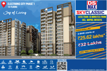 DS-MAX Skyclassic is a luxurious G+12 floors, 2 & 3 BHK apartment conveniently located at Electronic City Phase-1 near SKF factory. It offers you a choice of spacious & brilliantly designed flats. Here you will enjoy tranquility & luxury developed at pristine surrounding with world-class architectural ele...