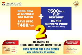 Get flat discount of Rs. 500 sq.ft. on the current price at Jains project in Hyderabad