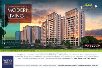 Pacifica North Enclave  is a residential project developed by Pacifica companies.The project is located in Vaishnodevi Circle, Ahmedabad. The project offers 3 BHK starting at Rs. 38 Lac. onwards. Project highlights: