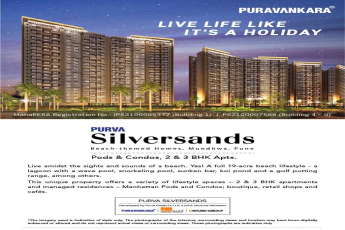This will be a typical day of your life in future, if you happen to live at Purva Silversands, Mundwa, Pune. You will wake up to a special day, amidst the sights and sounds of a beach. Yes! A full 19-acre beach lifestyle - a lagoon with a wave pool, snorkeling pool, sunken bar, koi pond, hammocks and a golf putting range, among others.