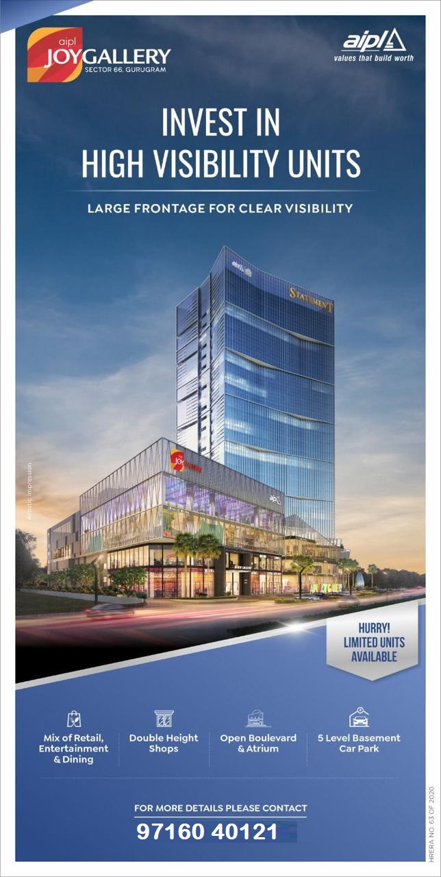 Investment with High Returns AIPL Joy Gallery stands as a smart investment choice, offering high returns in a region known for its affluent customer base and rapid development.
