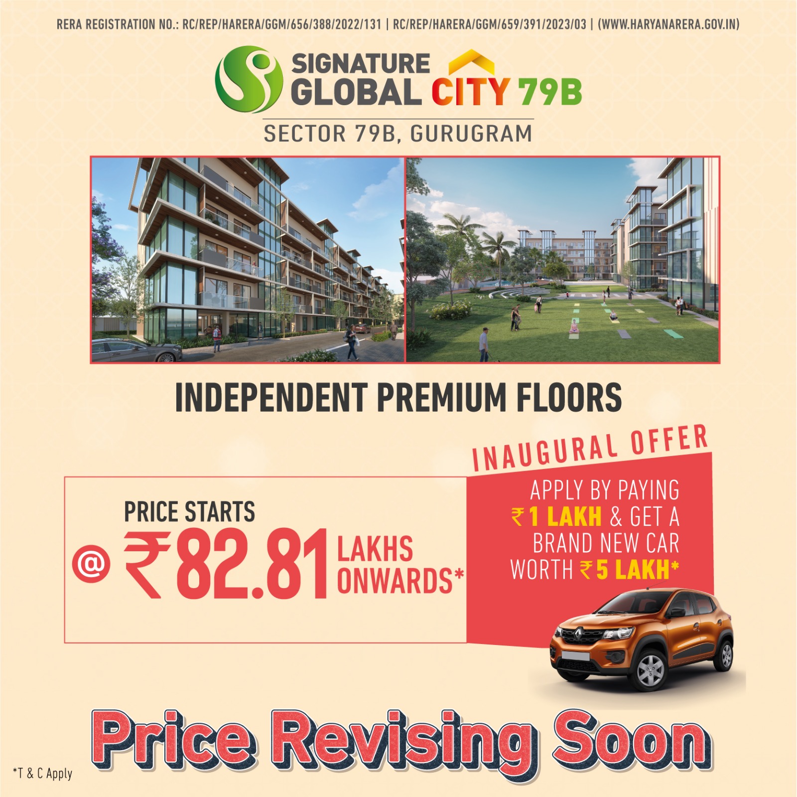 Share Avail Inaugural offer on booking of independent premium floor at Signature Global City 79B, Sector 79B, Gurgaon