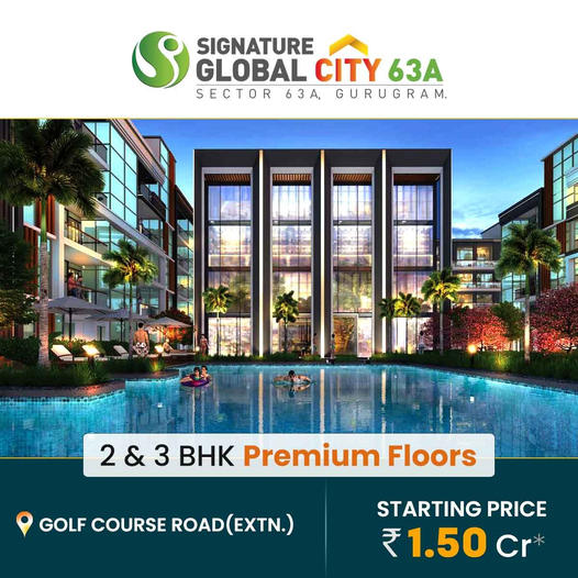 Signature Global City 63A, new launch low-rise luxury independent luxurious floors at SEC-63, Golf Course Extension Road, the housing complex offers 2 & 3 Bhk premium luxury Independent floors in various layouts and sizes with modern amenities.