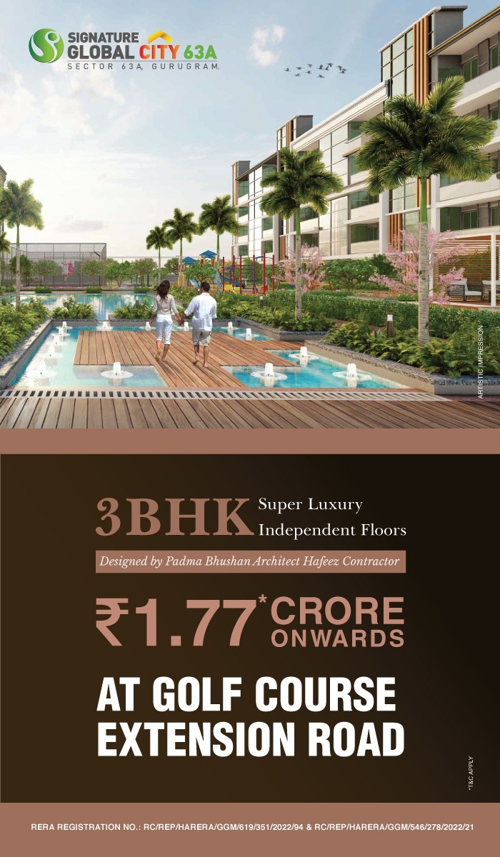 Share Book 3 BHK Super luxury independent floors at Signature Global City 63A, Gurgaon