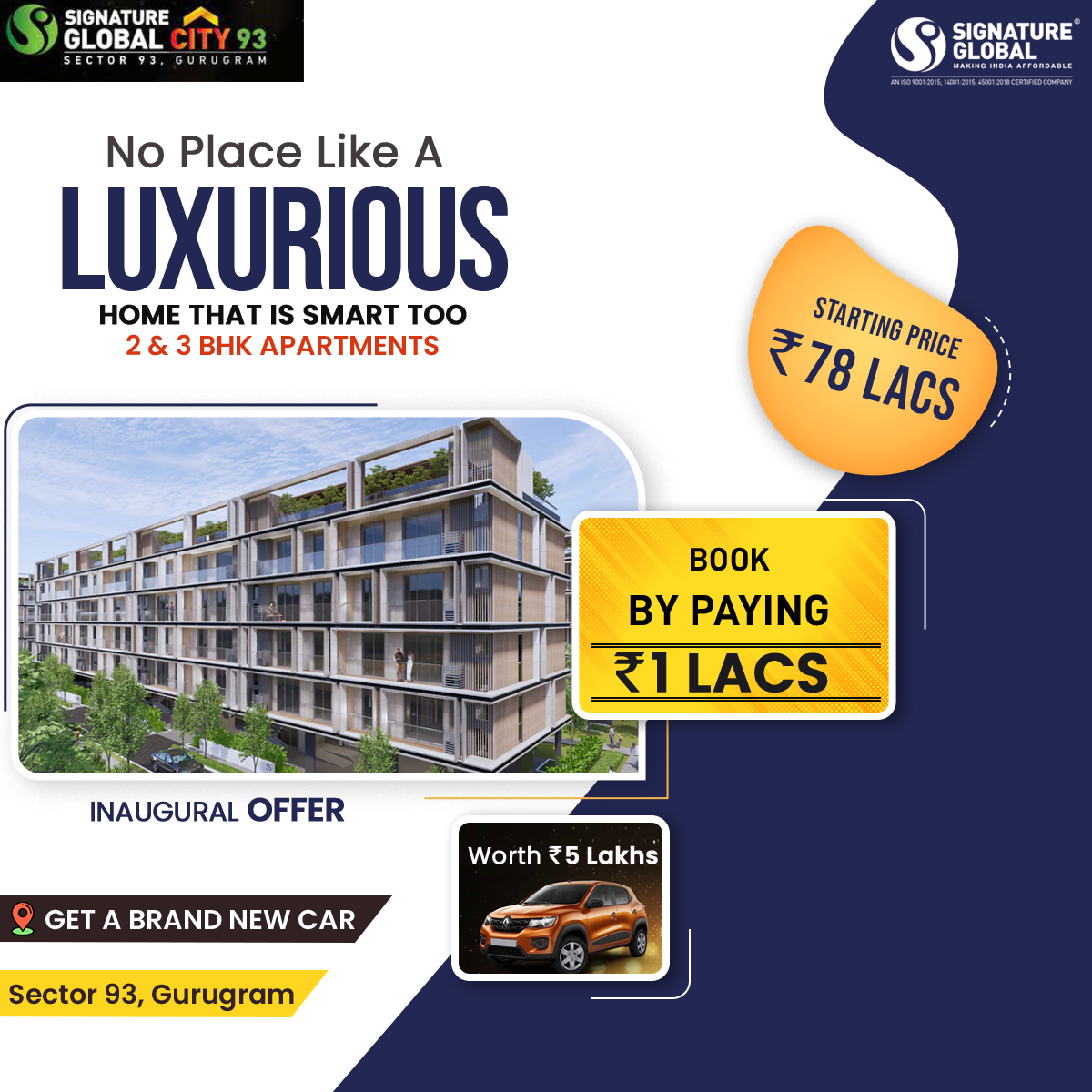 Share Book by paying Rs 1 Lac at Signature Global City 93, Gurgaon