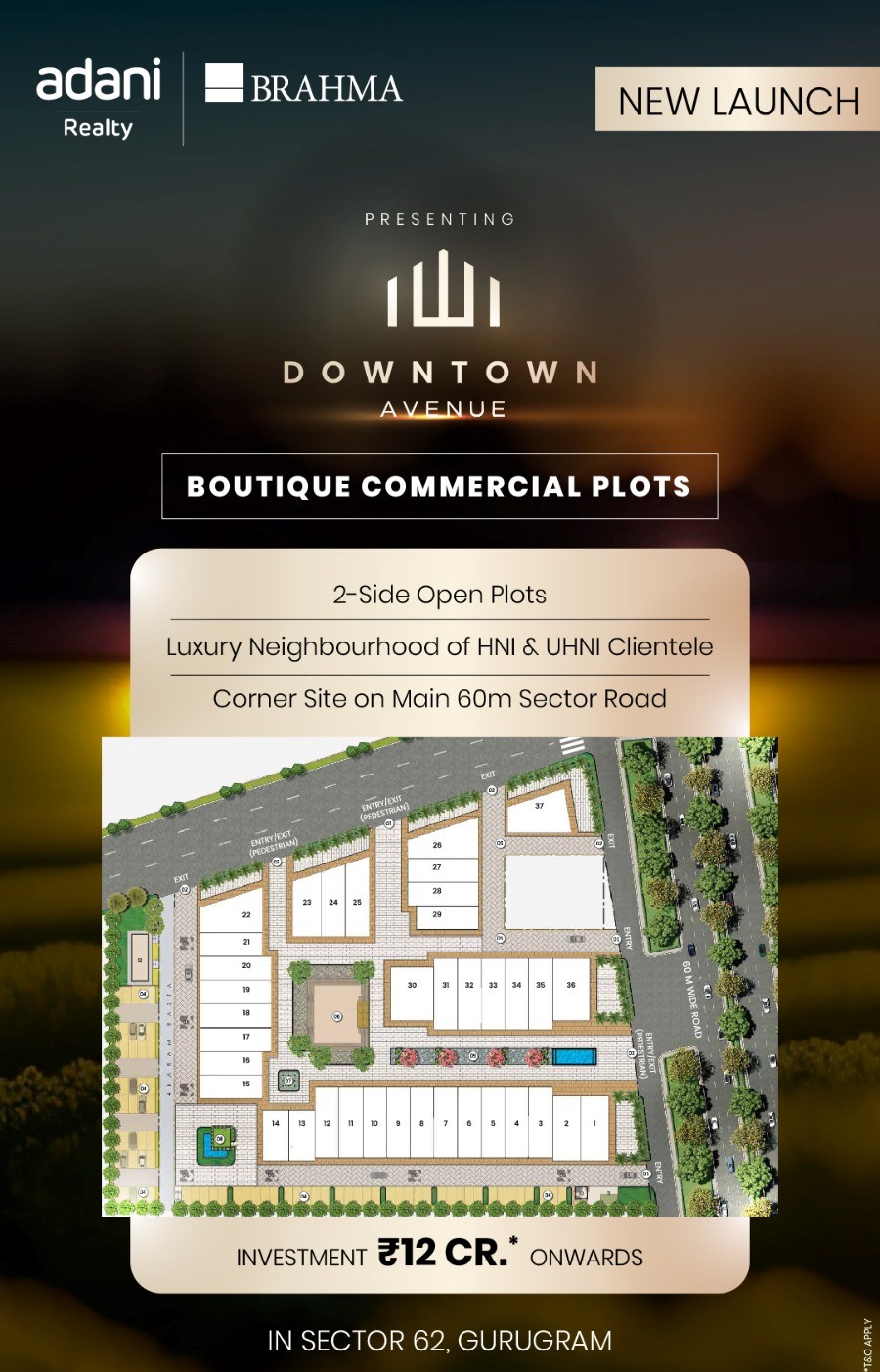 Share Boutique commercial plots at Adani Downtown Avenue in Sector 62, Gurgaon