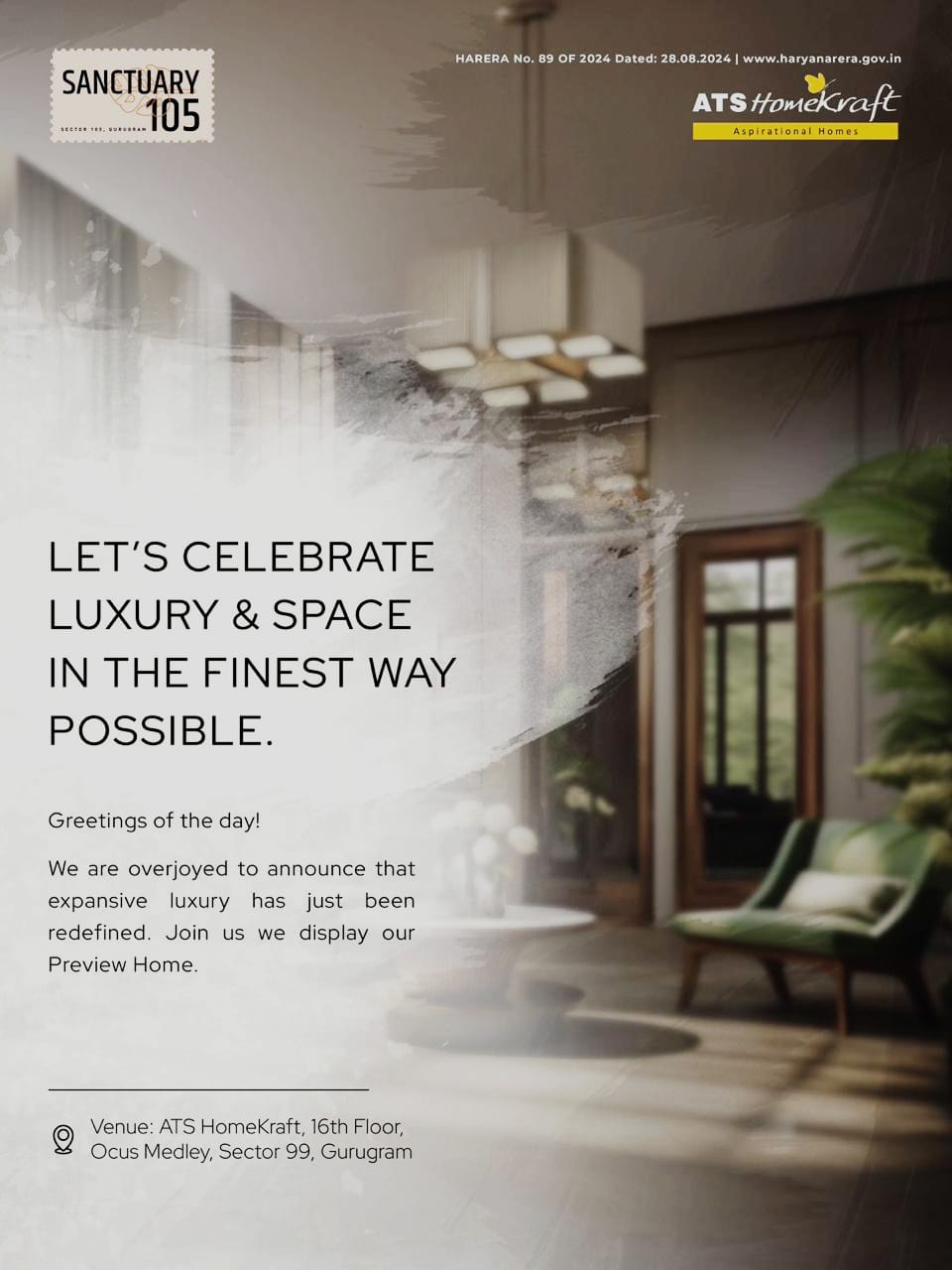 Welcome to Sanctuary 105, an extraordinary residential project brought to you by ATS HomeKraft. Nestled in the heart of Sector 105, Gurugram, this premier development offers a lifestyle of unparalleled luxury and comfort.