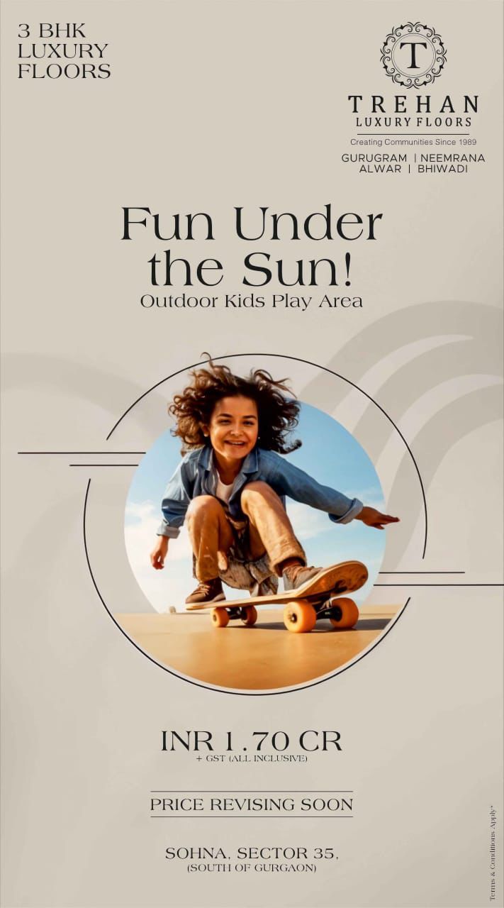 Introducing the luxurious 3 BHK floors by Trehan Builders in the serene location of Sohna, Sector 35, south of Gurgaon. Experience modern living with the comfort of openness and green surroundings.