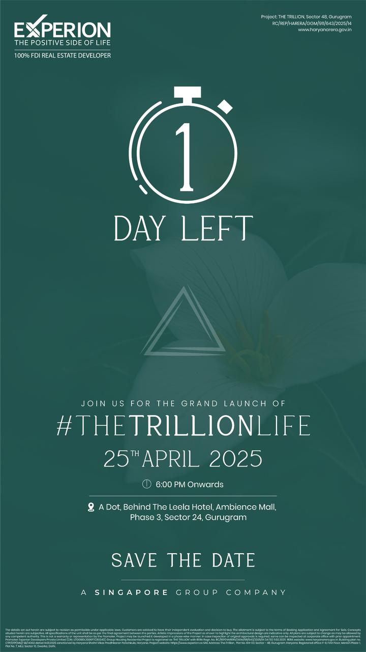Welcome to the grand launch of The Trillion by Experion, a premier real estate development in the vibrant heart of Gurugram. Join us on 25th April 2025 for an exclusive event showcasing this luxurious project.