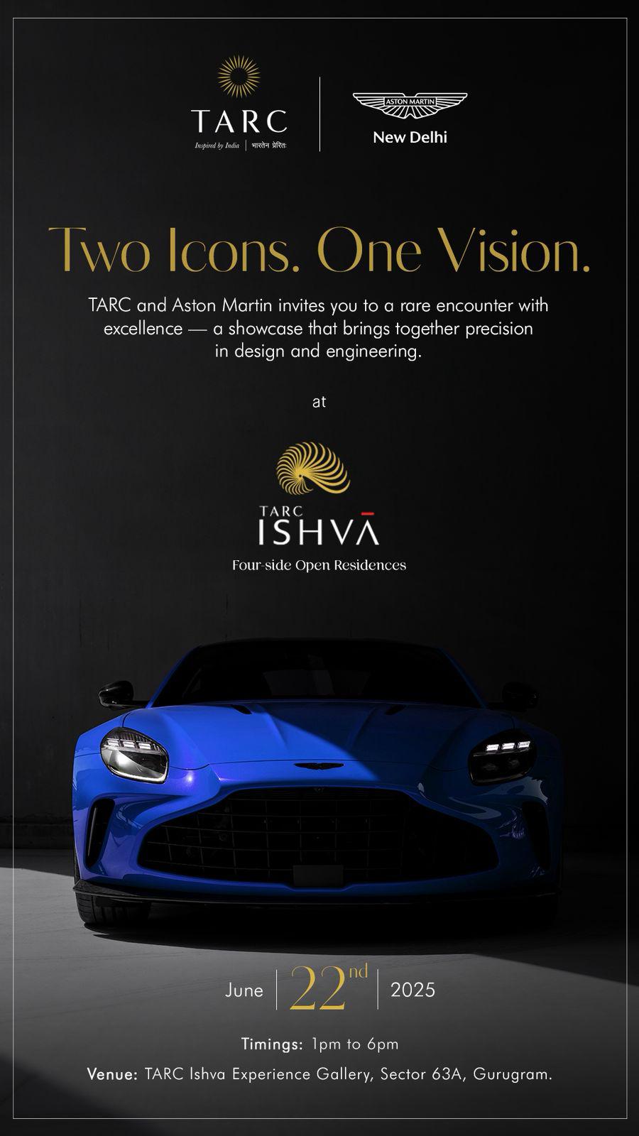 Join us for an exclusive showcase by TARC and Aston Martin at the prestigious TARC Ishva on June 22, 2025, from 1pm to 6pm at Sector 63A, Gurugram.