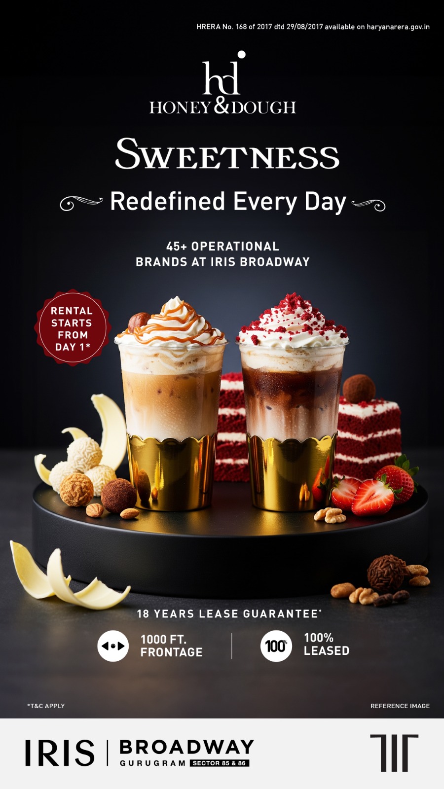 Located in the vibrant Iris Broadway at Sector 85 & 86, Gurugram, Honey and Dough redefines sweetness every day. With over 45 operational brands, immerse yourself in a delightful journey of flavors and creativity.