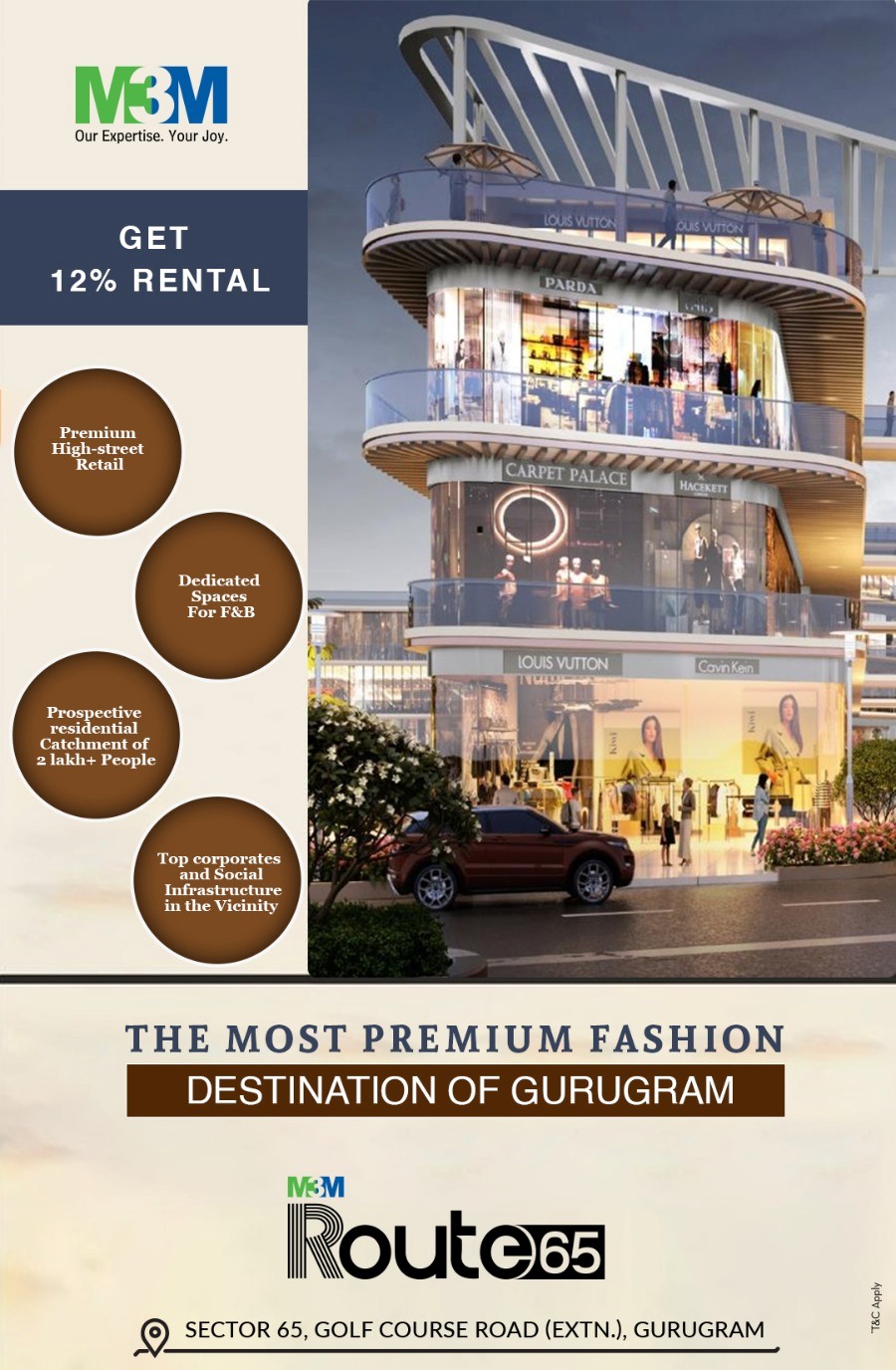 Share Get 12% rental at M3M Route 65, Gurgaon