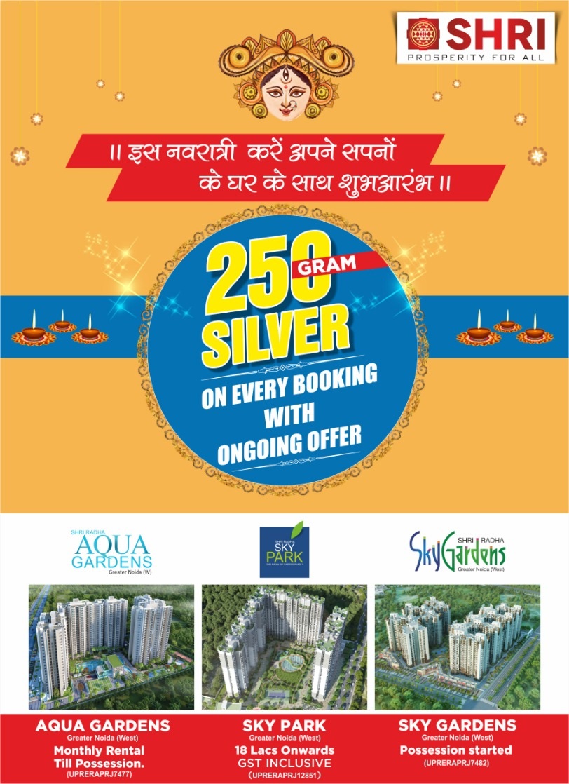 Share Get 250 gram silver on every booking with ongoing offer at Shri Radha properties in Greater Noida