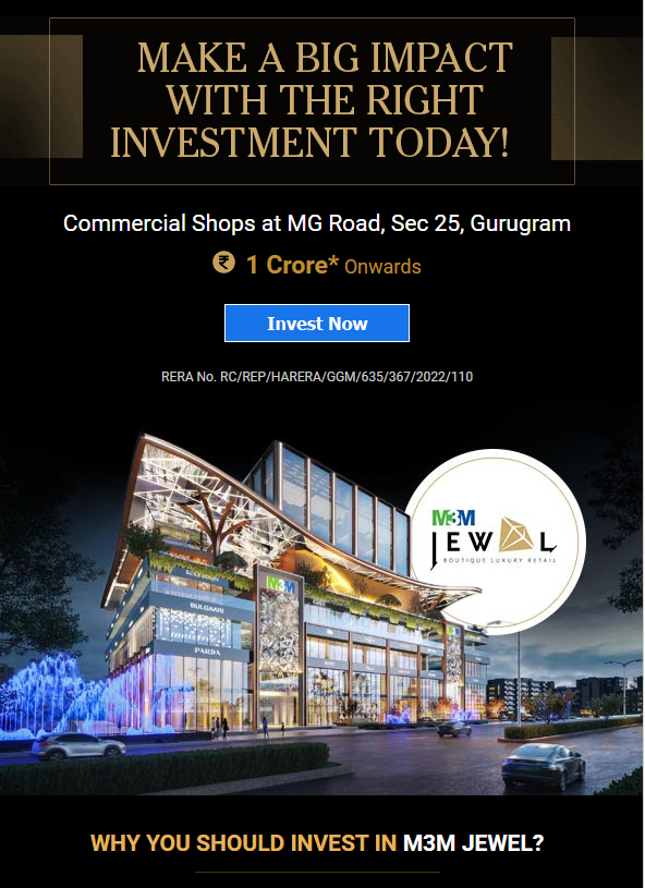 Share Grab your dream by investing in commercial shops with M3M Jewel in MG Road, Gurgaon