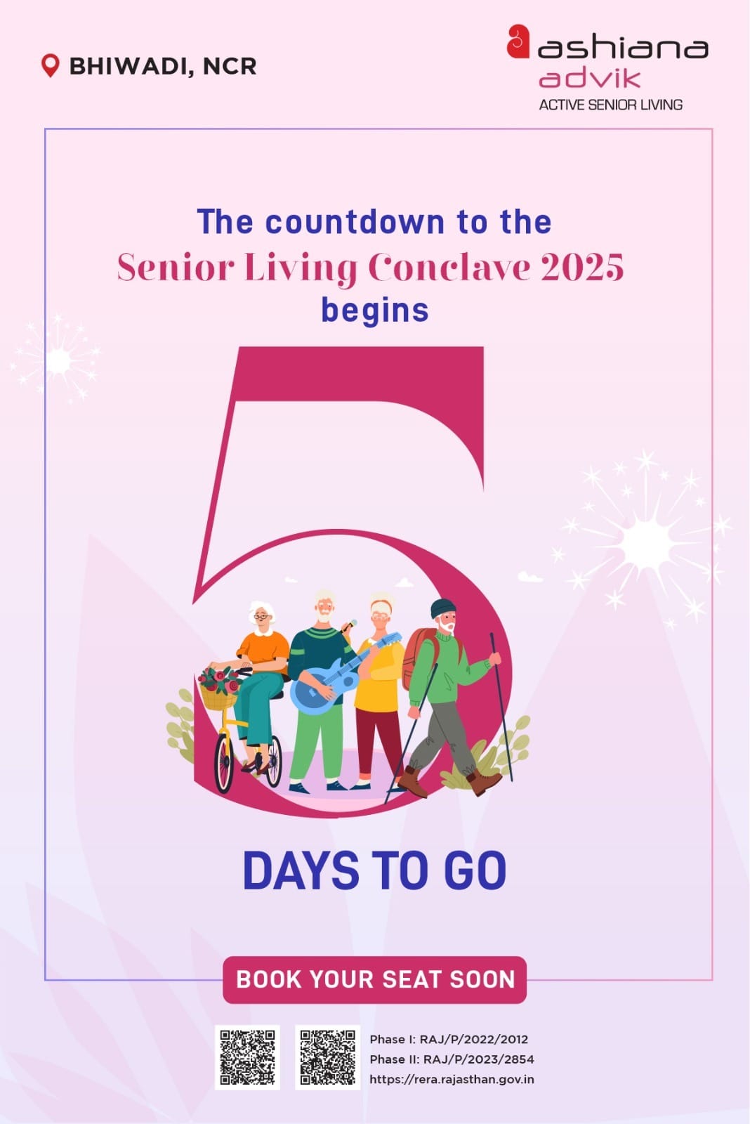 The countdown to the most awaited Senior Living Conclave 2025 has begun! Happening at the prestigious Ashiana Advik in Bhiwadi, NCR, this event is crafted to provide an enriching experience for seniors looking for an active and fulfilling lifestyle.