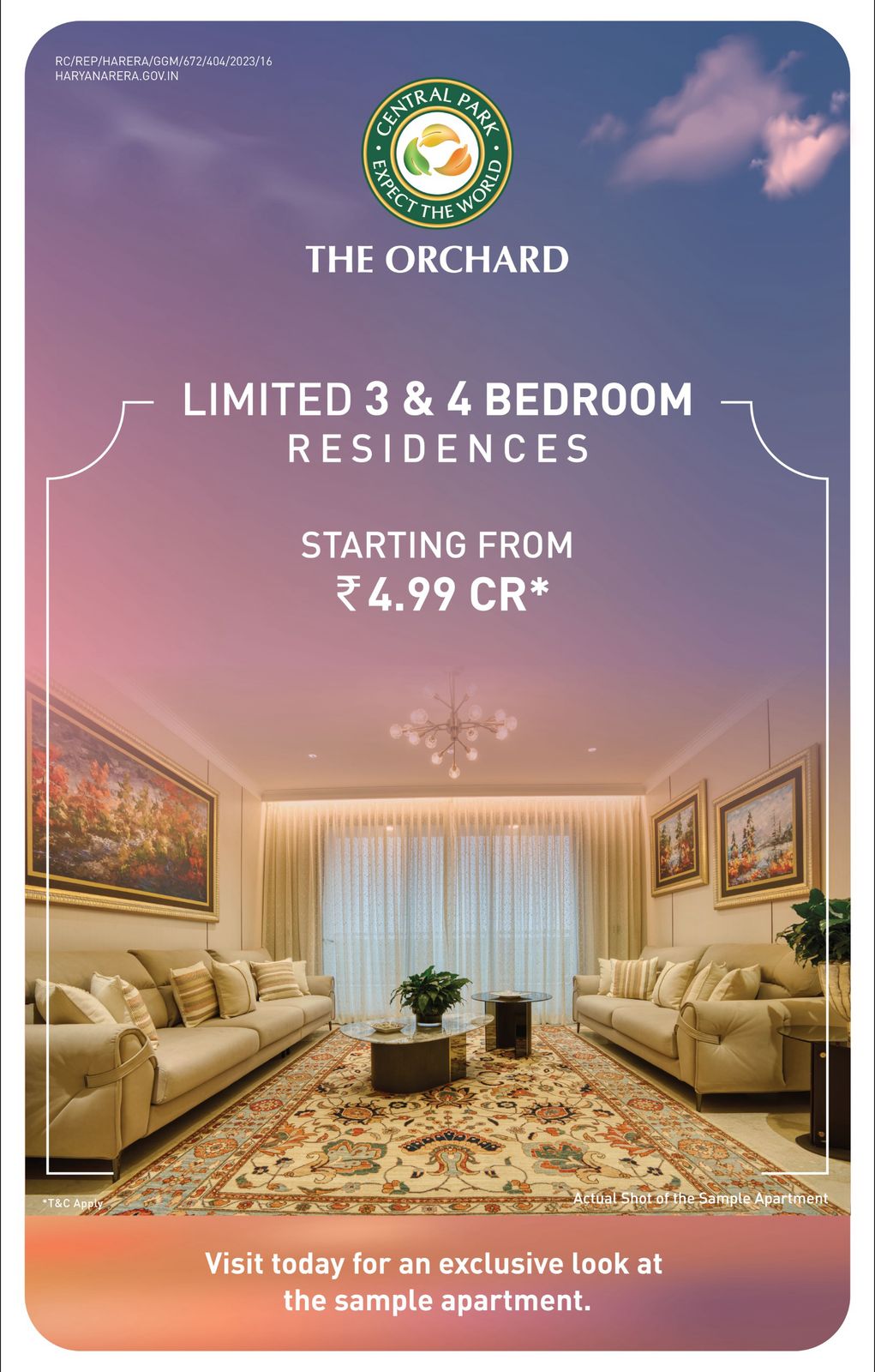 Share Limited 3 & 4 Bedroom Residences Starting from ₹4.99 Cr, Central Park, The Orchard, Haryana