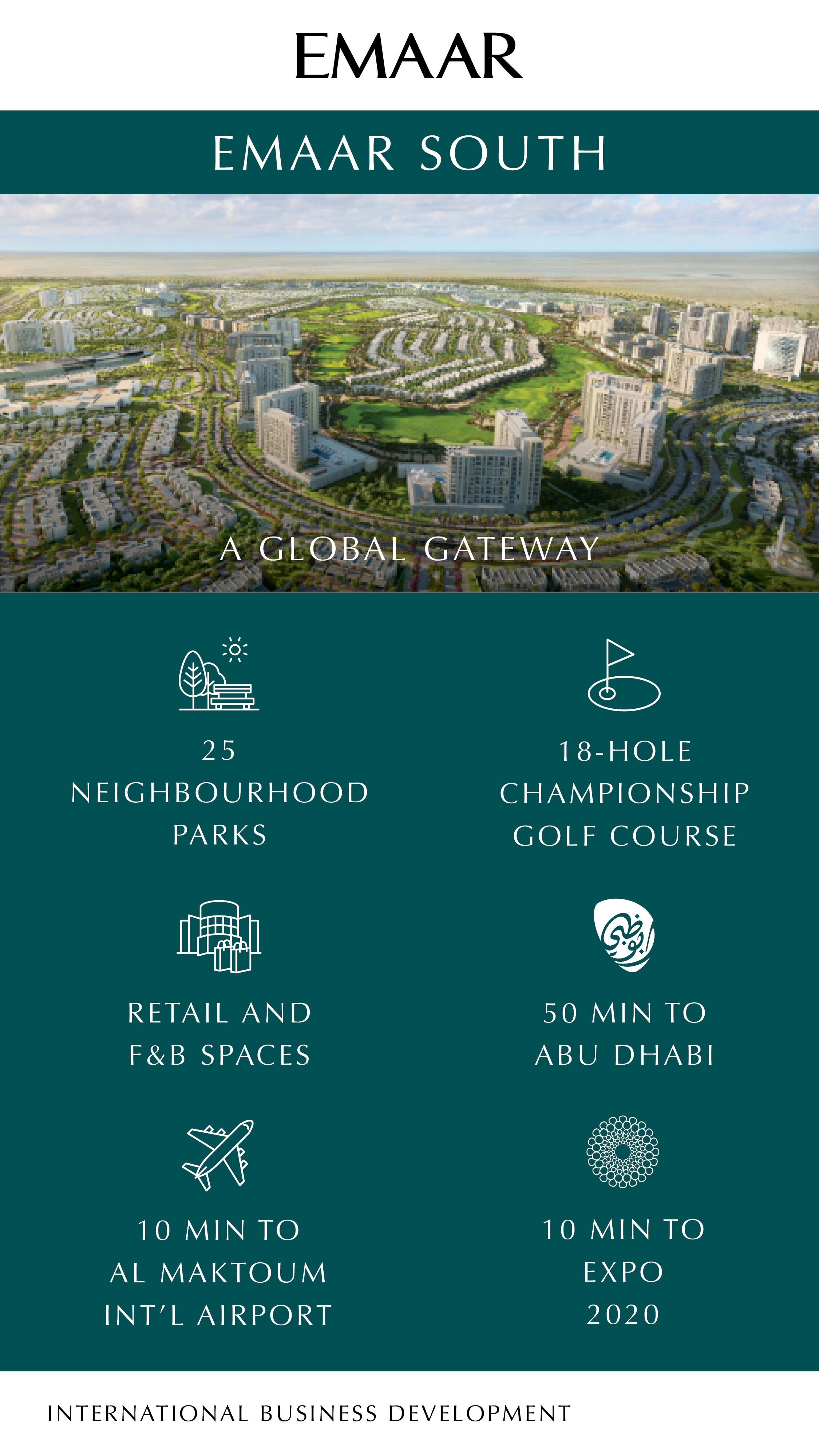 Emaar South is located within Emirates’ flagship urban project, Dubai South. The 145-square kilometer smart city is set to become a pivotal hub in the global economy.