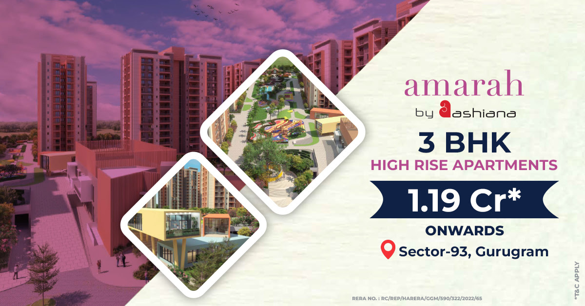 Share Offers 3 BHK luxury apartments Rs 1.19 Cr at Ashiana Amarah, Gurgaon