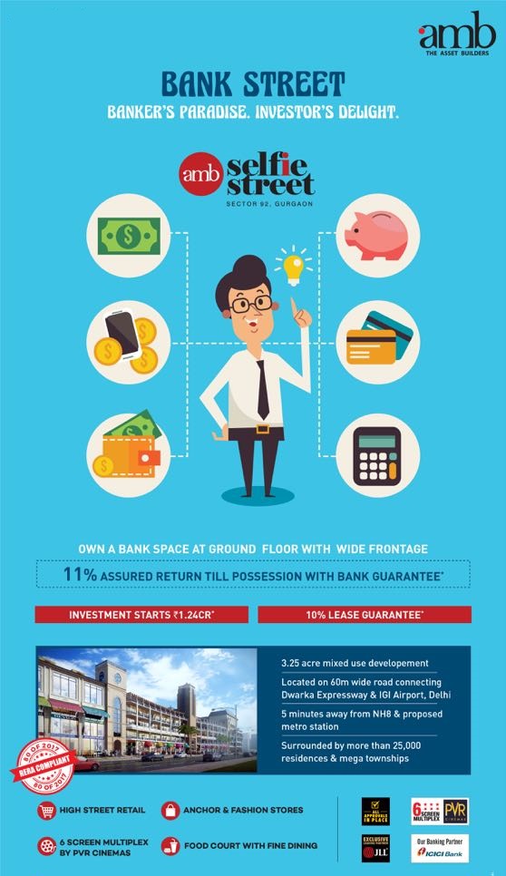 AMB Selfie Street is a commercial project developed by the AMB Group. The project is located in Sector 92, Dwarka Expressway, Gurgaon.