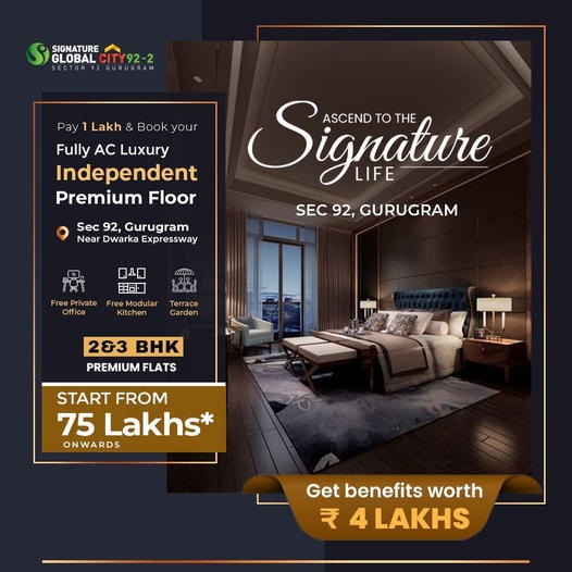 Share Pay Rs 1 Lac and book your fully AC luxury independent premium floor at Signature Global City 92 Phase 2, Gurgaon