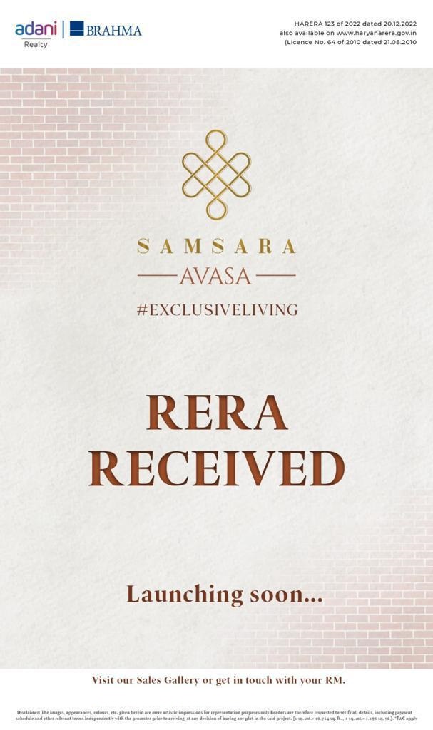 Share RERA Received at Adani Samsara Vilasa in Sector 63, Gurgaon