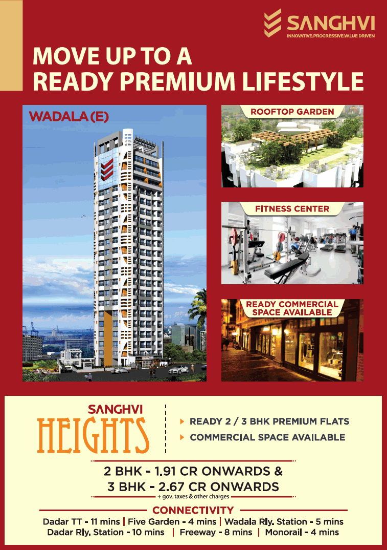 Sanghvi Heights is located in Wadala. The Sanghvi Group of Companies is one of the few established leading construction houses with their main thrust on Residential Projects. Sanghvi Heights at Wadala in Central Mumbai is very strategically located amidst commercial, cultural, educational and religious activity.